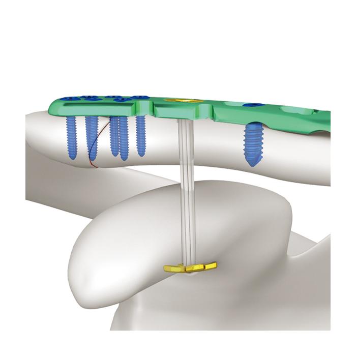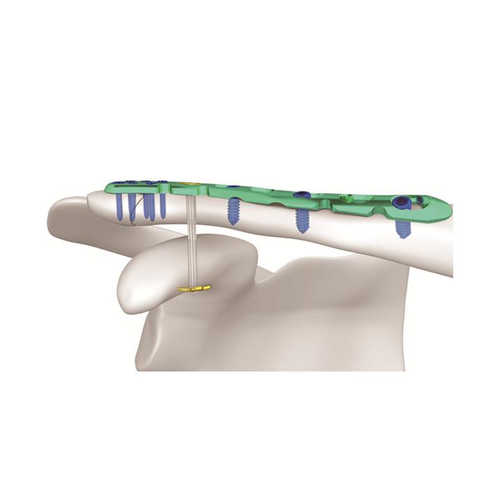 - Diseño especializado para combinación con placa de bloqueo para el propósito de resolver la fractura de clavícula distal combinada con la dislocación de la articulación de CA