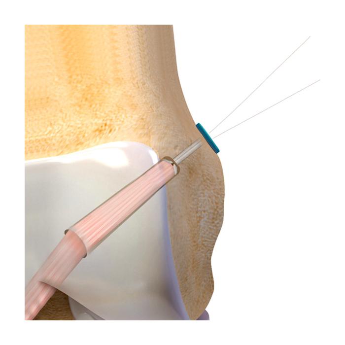 - Ensamble previamente la línea de tracción de alta resistencia de UHMWPE n. ° 5 para reducir el riesgo de rotura intraoperatoria.