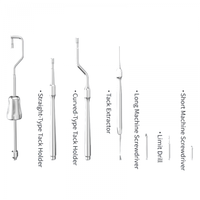 El kit avanzado de tornillos para tienda y tachuelas para huesos GBR incluye: