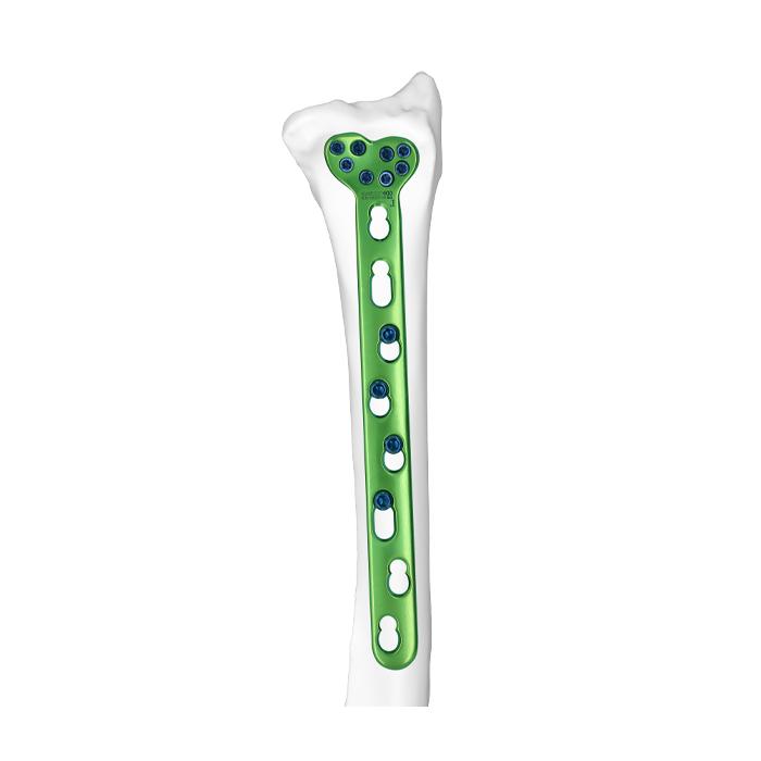 - El diseño anatómico pre – contorneado se ajusta excelentemente al eje radial.