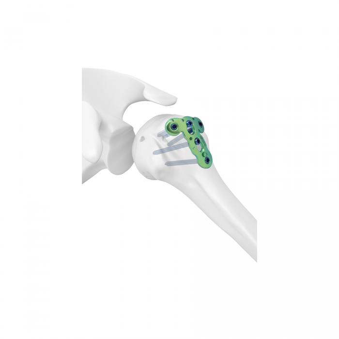 La Placa Bloqueada Humeral Proximal para Gran Tuberosidad es el diseño ideal para la reducción anatómica y la estabilización de las fracturas por avulsión de la tuberosidad mayor del húmero proximal.