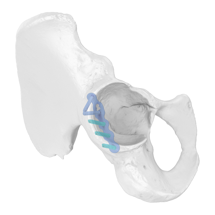 – Diseño anatómico, la dirección del tornillo de bloqueo apunta hacia la columna posterior y reduce la posibilidad de que el tornillo entre en la articulación.