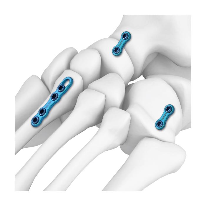 - Para traumatismos de ossa metatarsi y fusión de articulación tarsometatarsiana.