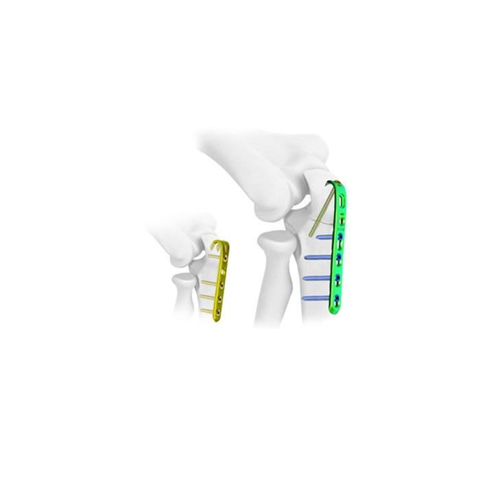 - Anatomical precontorneado placa con excelente ajuste al olécranon.