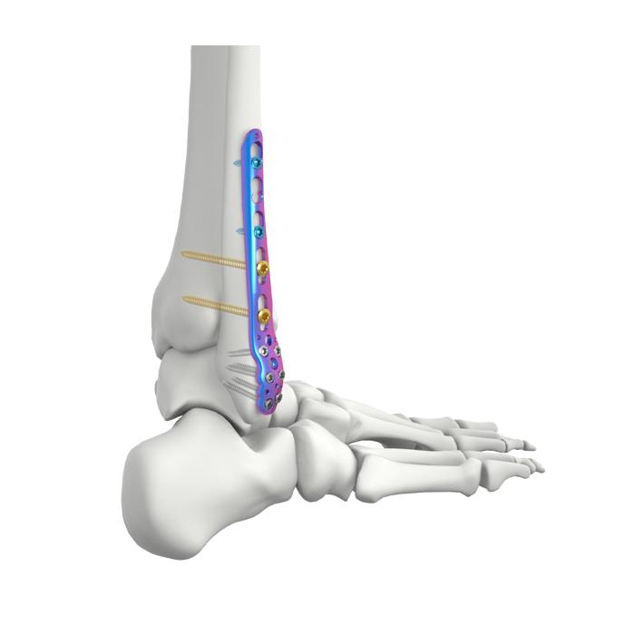 La placa de bloqueo del peroné lateral distal VAL se utiliza para las fracturas del peroné distal,, las seudoartrosis y las malas consolidaciones..