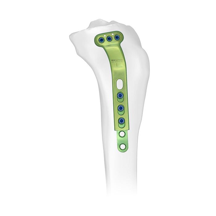 • El diseño de perfil bajo anatómicamente premoldeado reduce la irritación de los tejidos blandos y la necesidad de moldear la placa