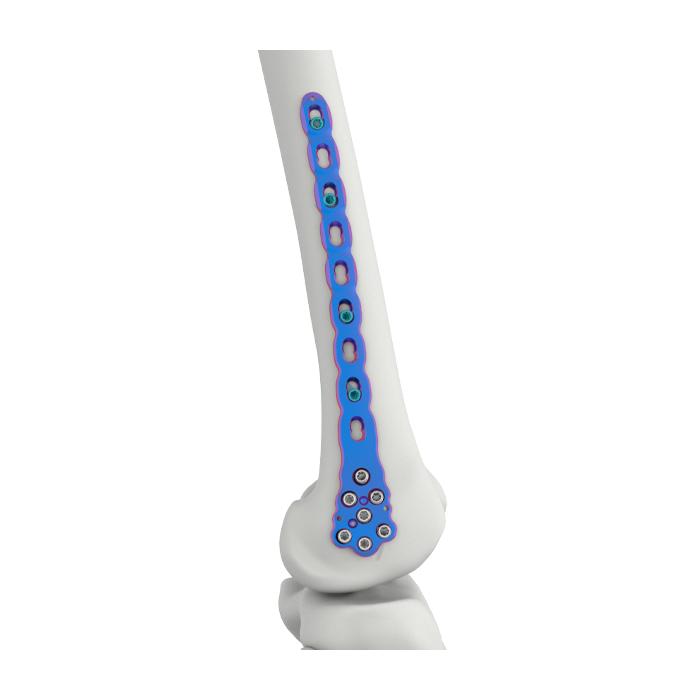 La placa de bloqueo femoral distal VAL se utiliza para fracturas femorales distales, fracturas intraarticulares completas, incluidas aquellos con fracturas coronales asociadas, fracturas diafisarias extraarticulares o distales y fracturas periprotésicas.
