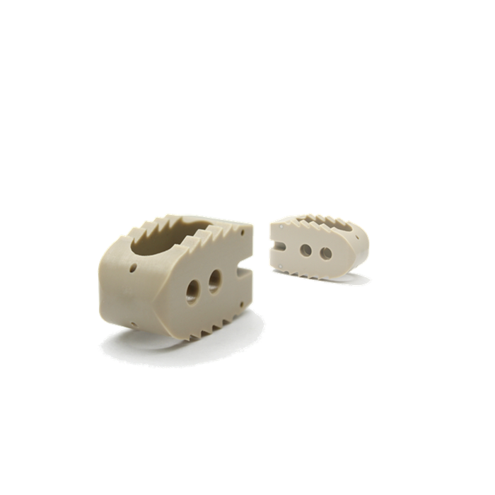 - Los dientes piramidales en las superficies superior e inferior garantizan una buena estabilidad primaria y reducen el riesgo de migración de la caja.