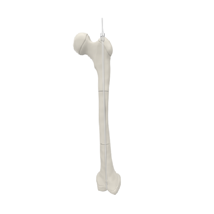 – El clavo interior se fija firmemente a la epífisis distal con hilo.