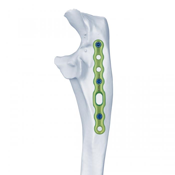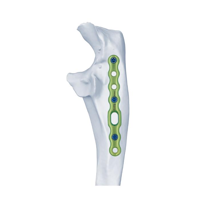 • Proporcione orificios para tornillos desde la cabeza del olécranon hasta el eje, fijando eficazmente la fractura del olécranon.