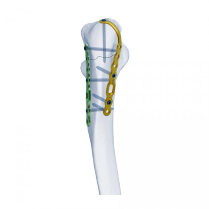 El Sistema de Fijación del Olécranon, la fijación de dos placas garantiza una mejor resistencia y estabilidad de fijación.