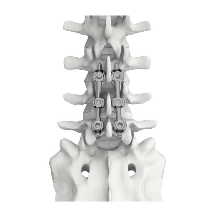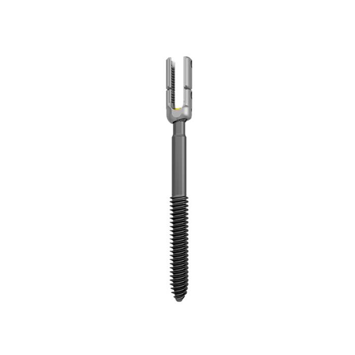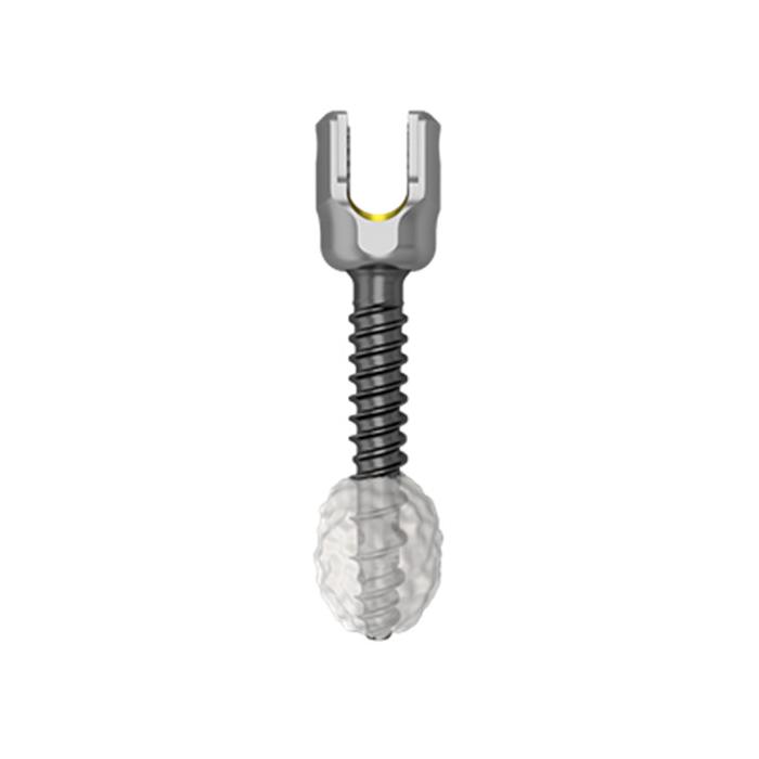 - Rosca autorroscante de la punta del tornillo: fácil inserción del tornillo en el pedículo; El diseño sin rosca de la ranura sin dañar la pared del pedículo hace que la fijación bicortical sea más segura (excepto S2AL)
